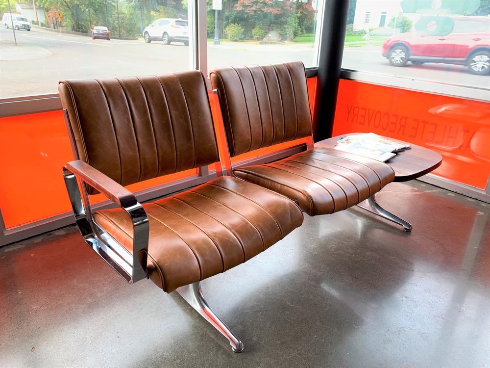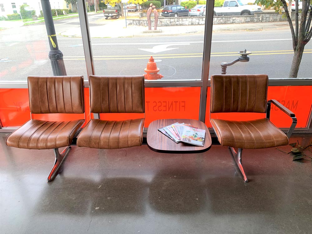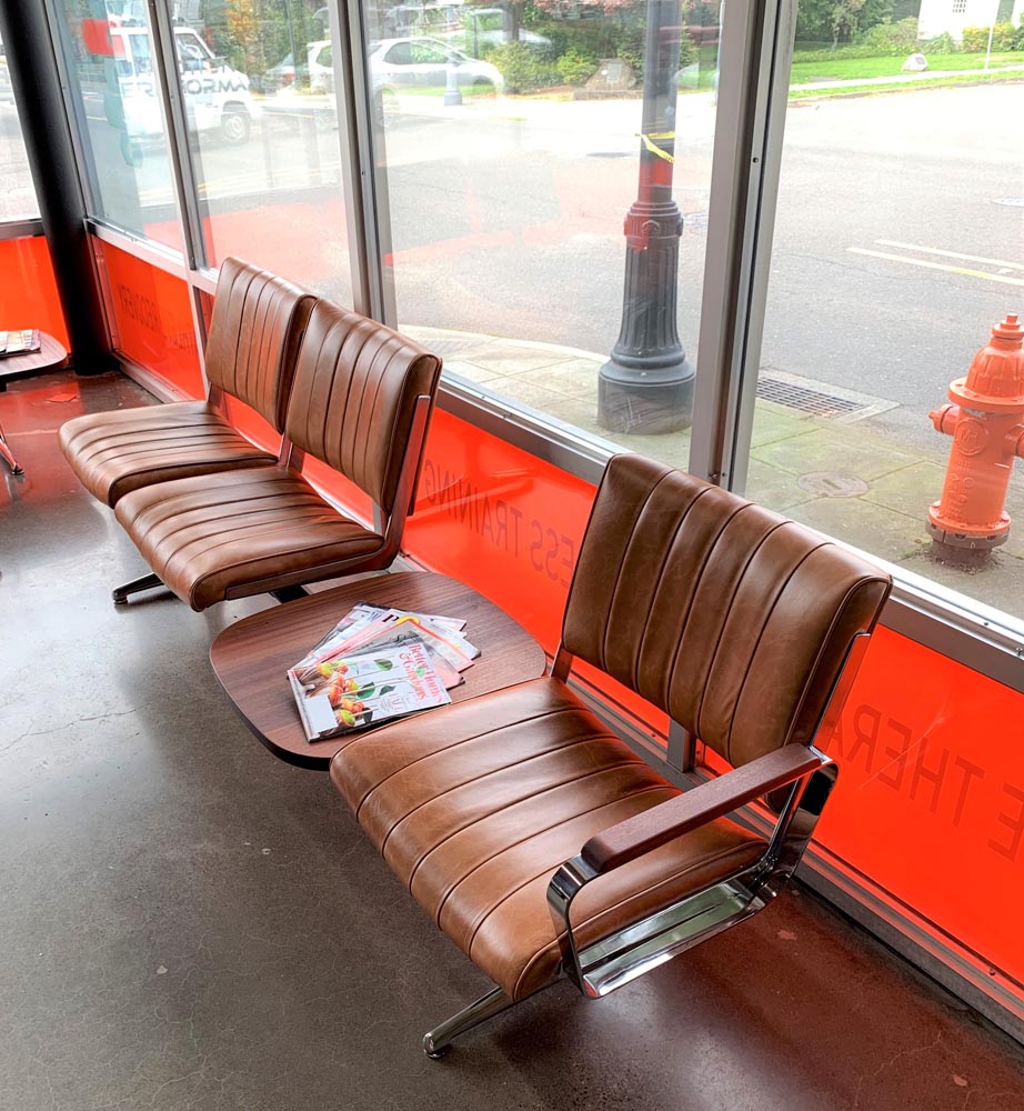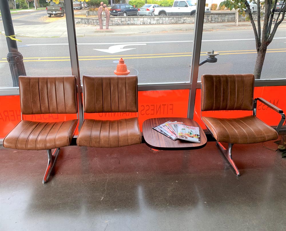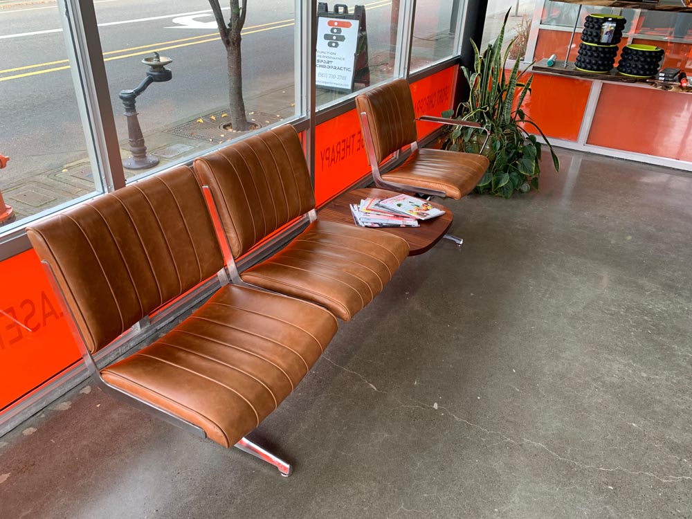 Situated in the heart of historic downtown Oregon City, Function Performance Sports Chiropractic sought to create a welcoming and aesthetically pleasing environment for its clients. PDXOriginals was proud to partner with Function Performance by installing two of our signature Hawthorne Brown Leather Benches, each paired with handcrafted Sapele tables and armrests. This custom furniture combination enhances the office’s ambiance, exemplifying our commitment to delivering high-quality, tailored commercial furniture solutions that elevate professional spaces.