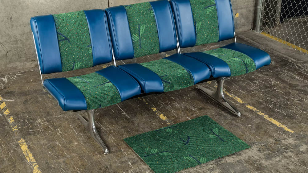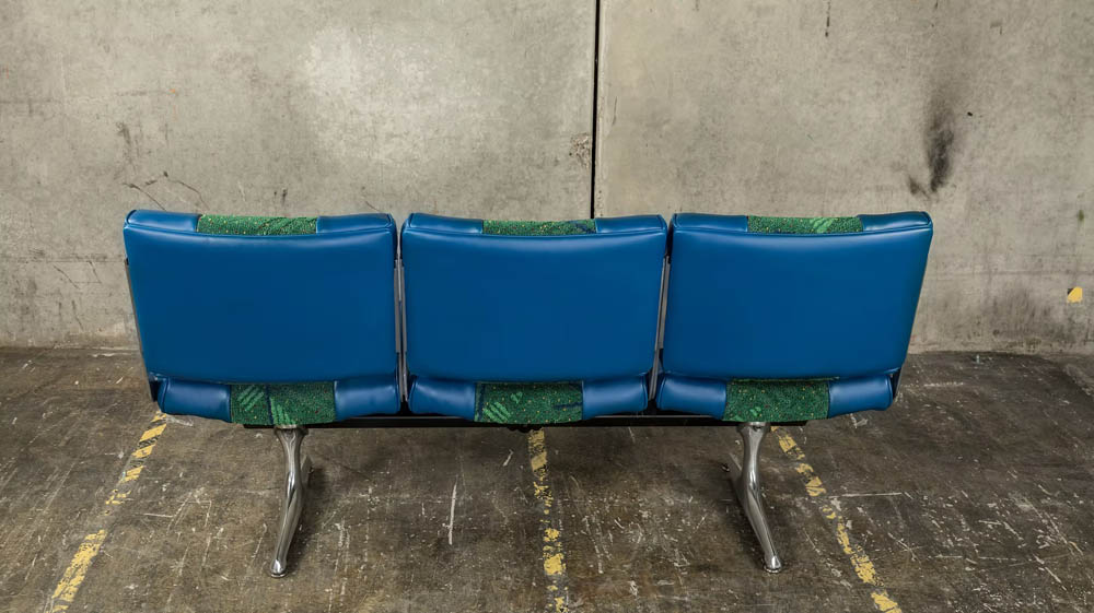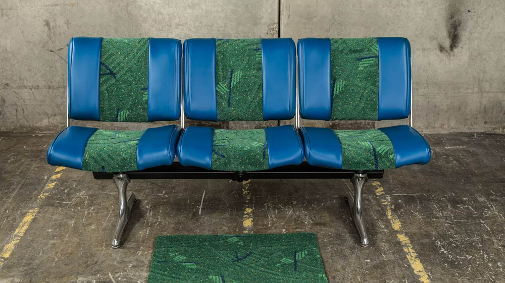 With the help of local artist Michel Hulsey, this bench design was inspired by its PDX origins and DFRNTpigeon’s tagline – “don’t just rise, take flight,” and combines the original airport bench design with the new airport carpet to create something that celebrates the joy of flight travel!