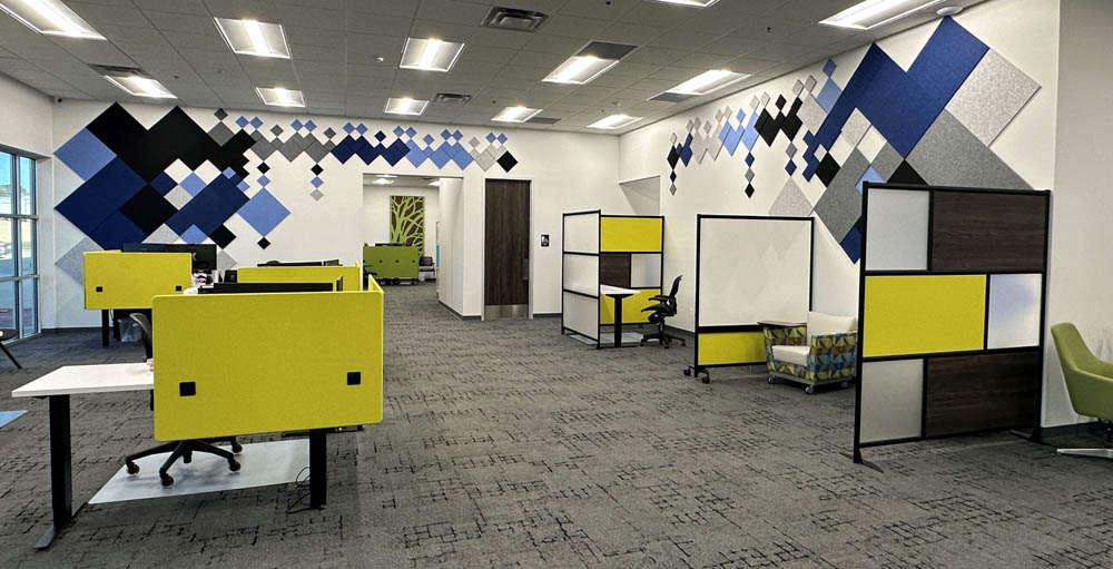 MergeWorks offers an extensive product portfolio that includes desk dividers, room dividers, acoustic wall panels, mobile dry erase boards, sit-stand desks, and benching systems. These products are designed to seamlessly integrate into various office settings, supporting open-plan layouts while addressing the need for visual and acoustic privacy. Their desk dividers and acoustic panels effectively reduce noise distractions, fostering a more focused and productive workspace. The sit-stand desks and benching systems promote ergonomic comfort, encouraging healthier working habits. Mobile dry erase boards and room dividers add a layer of versatility, allowing for dynamic collaboration and flexible space management.