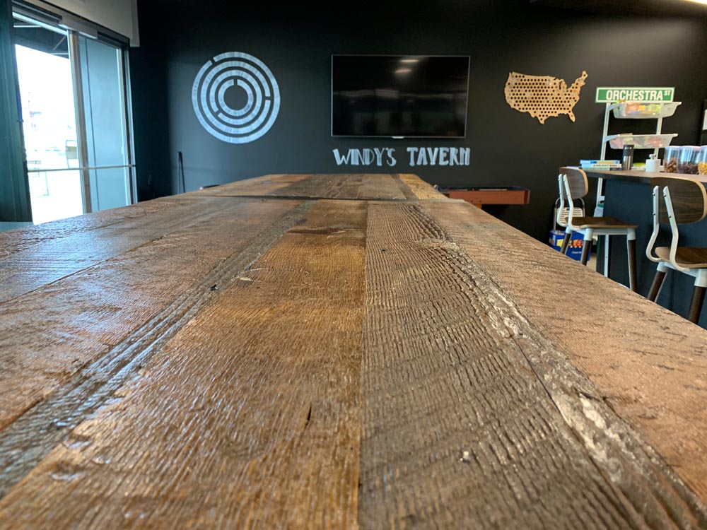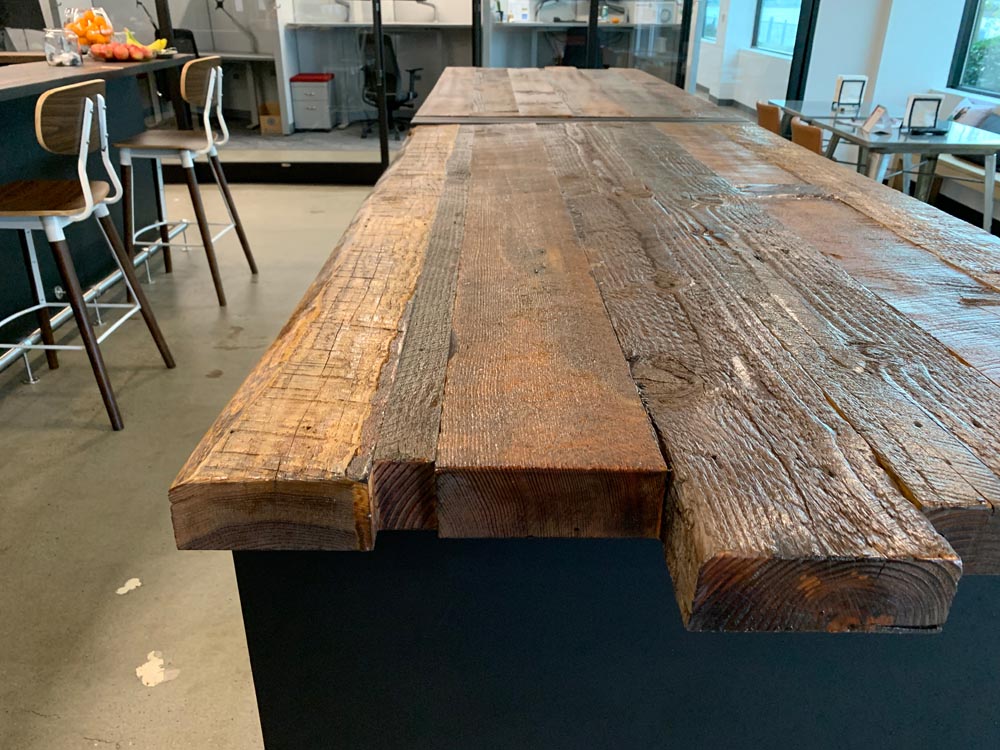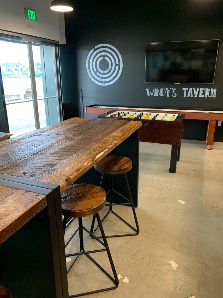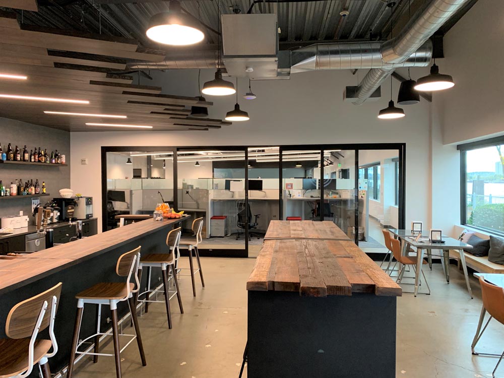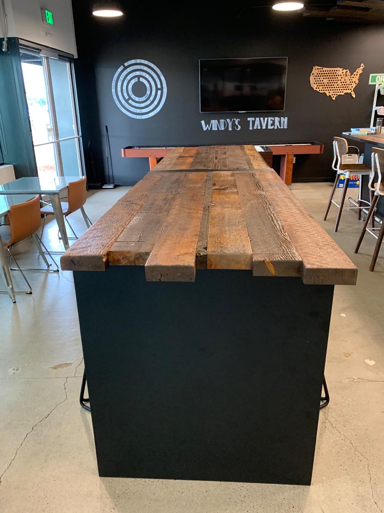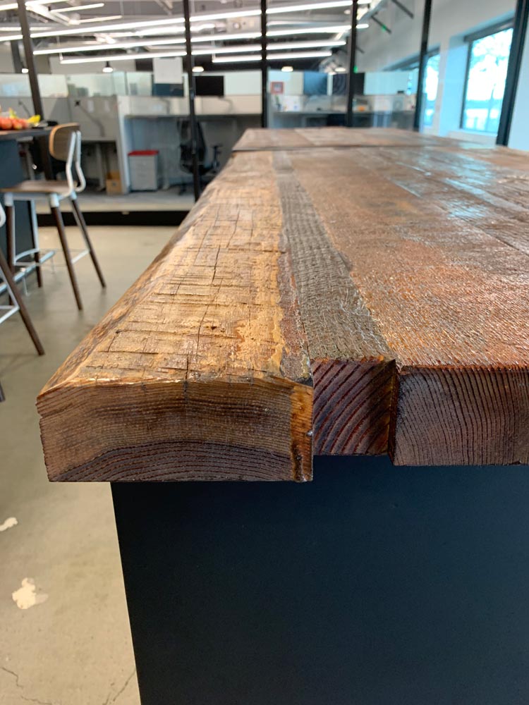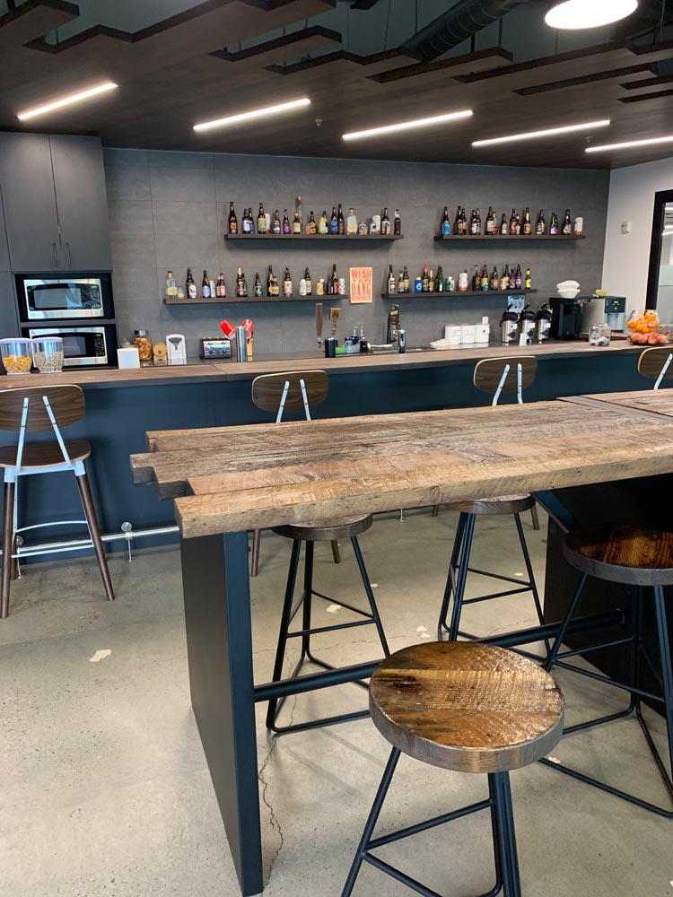 Orchestra’s commitment to sustainability extended to their request for custom bar tables and stools. PDXOriginals designed these pieces using reclaimed wood dating back to 19th-century Portland, giving new life to local history. The waterfall table design, inspired by the city’s natural water features, serves as both an attractive centerpiece and a functional gathering space. By integrating unique, locally sourced materials, we demonstrated how our custom and contract furniture solutions can be tailored to reflect a company’s values while meeting diverse workspace needs.